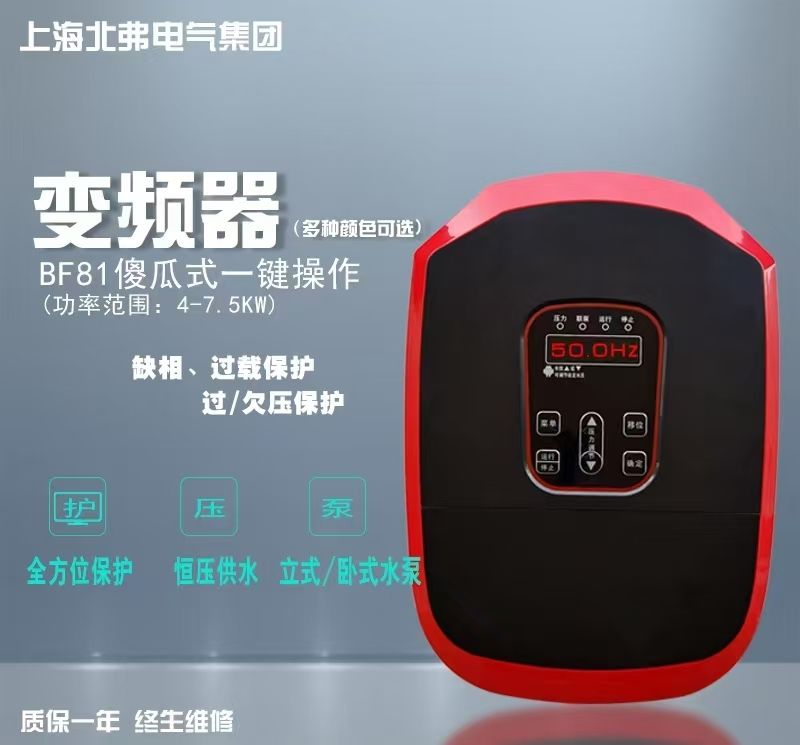 BF80/81恒压供水背负式自动化一键操作型变频器为我公司的自动化一键操作型系列产品,中文操作,简易供水参数设置。BF80/81外壳升级,功能一样,欢迎咨询。产品特点: